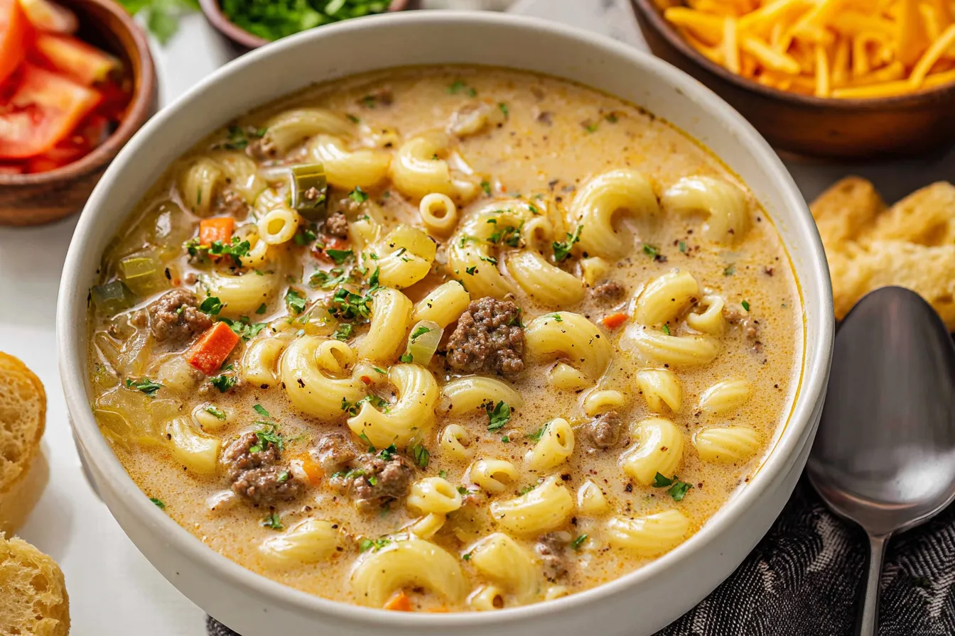 Savory One Pot Cheeseburger Macaroni Soup Easy Delicious