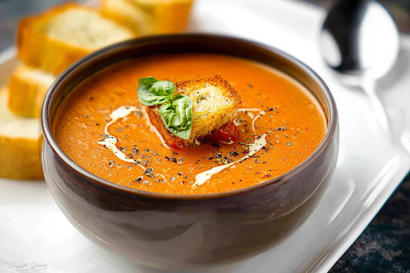 Savor the delicious flavor boost of Roasted Tomato Basil Soup Perfect for cozy nights its a musttry for soup lovers seeking ultimate taste