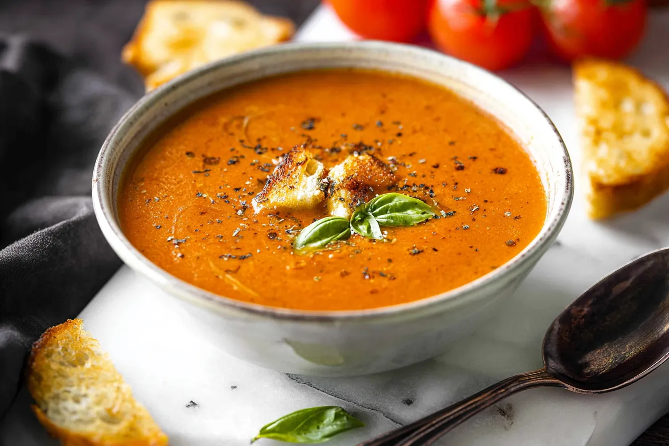 Savor the delightful flavors of Roasted Tomato Basil Soup This recipe combines rich tomatoes and fresh basil for a truly delectable dish
