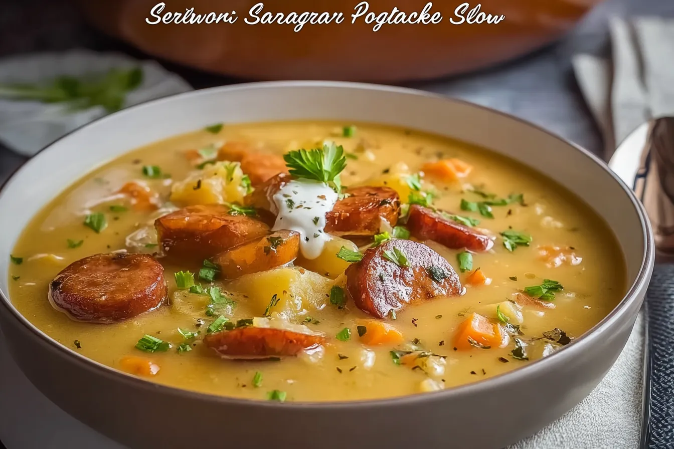 Hearty Slow Cooker German Potato Soup with Savory Sausages